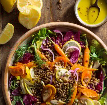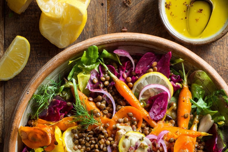 Salade de Lentilles, Carottes et Vinaigrette Citron-Cumin